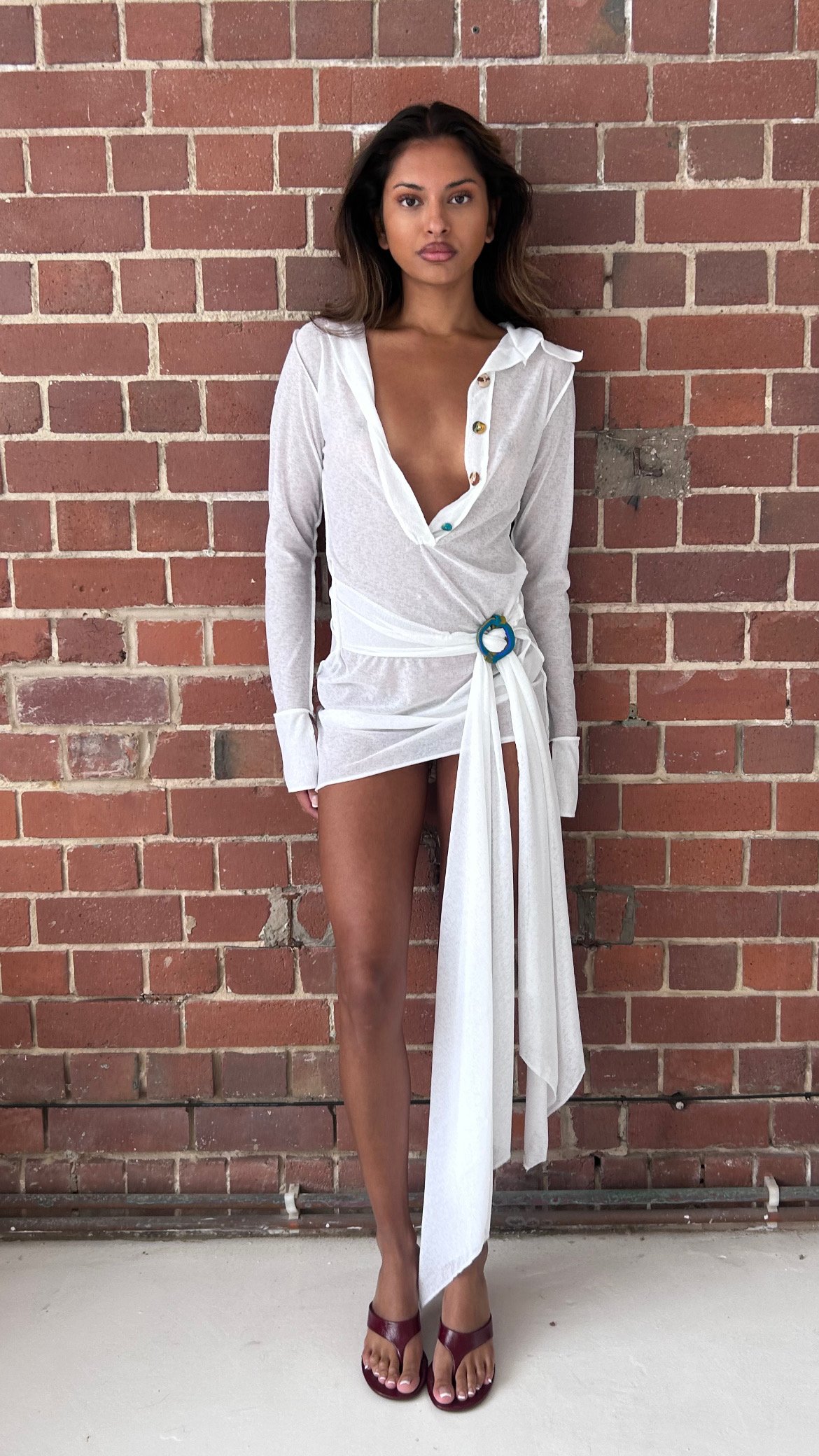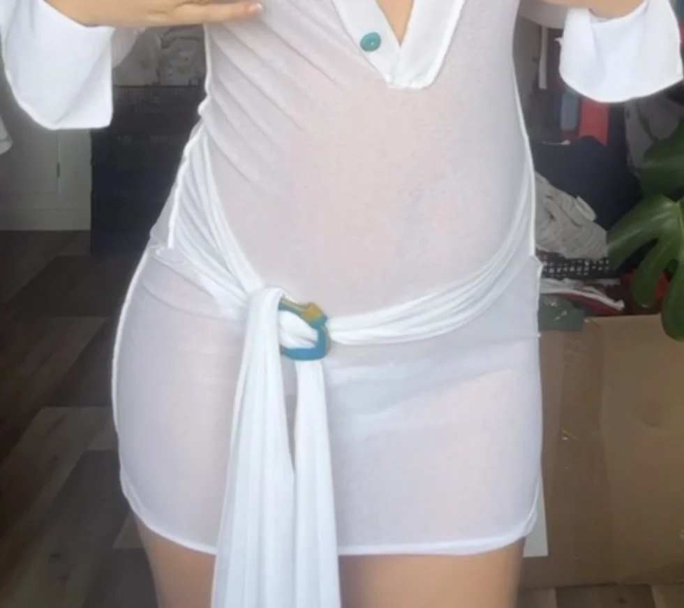 white hand made dress with delicate clay pieces